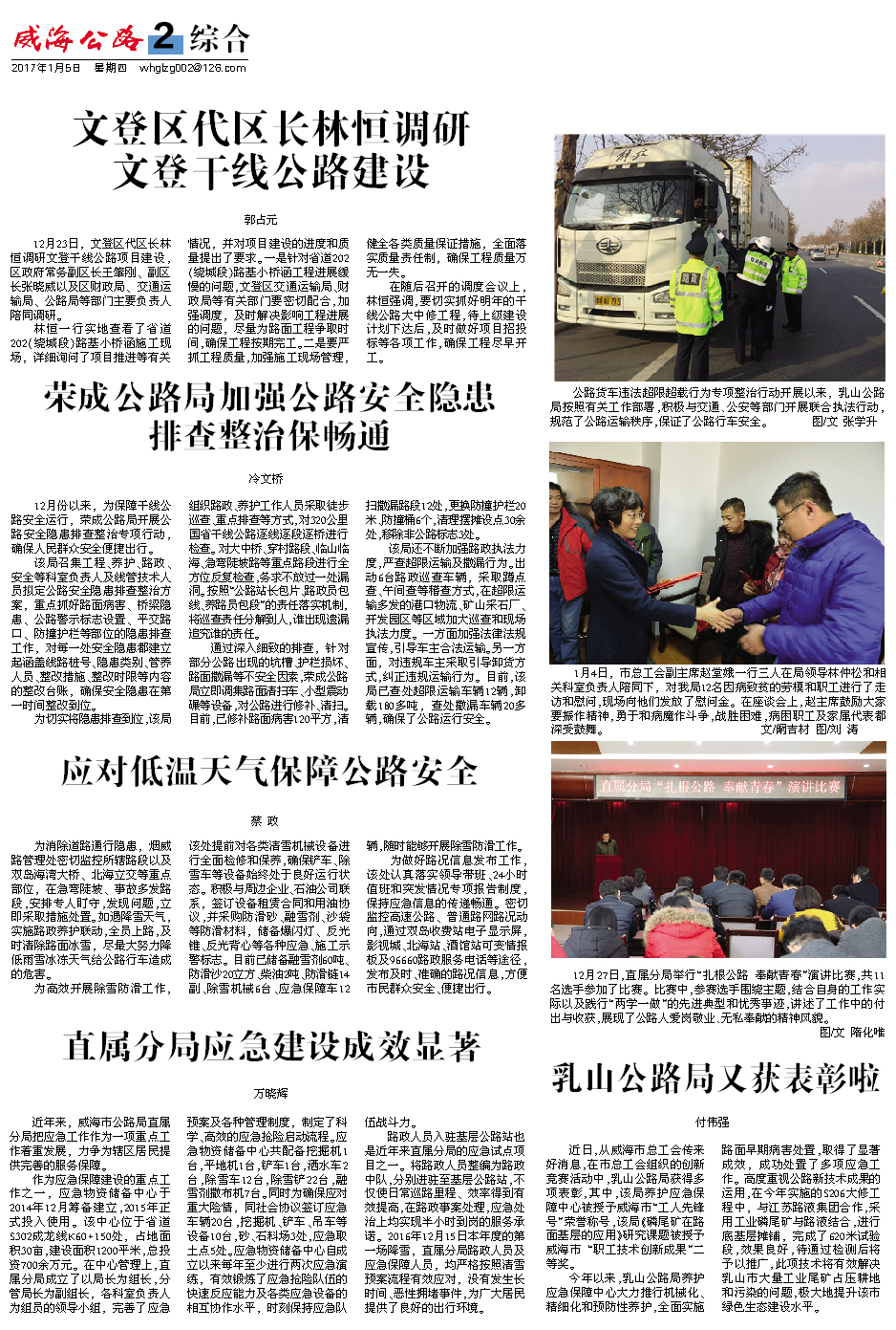 发布日期:2017-01-13 信息来源: 威海市公路局  作者: 威海市公路管理局  浏览次数:  字号:[ ]